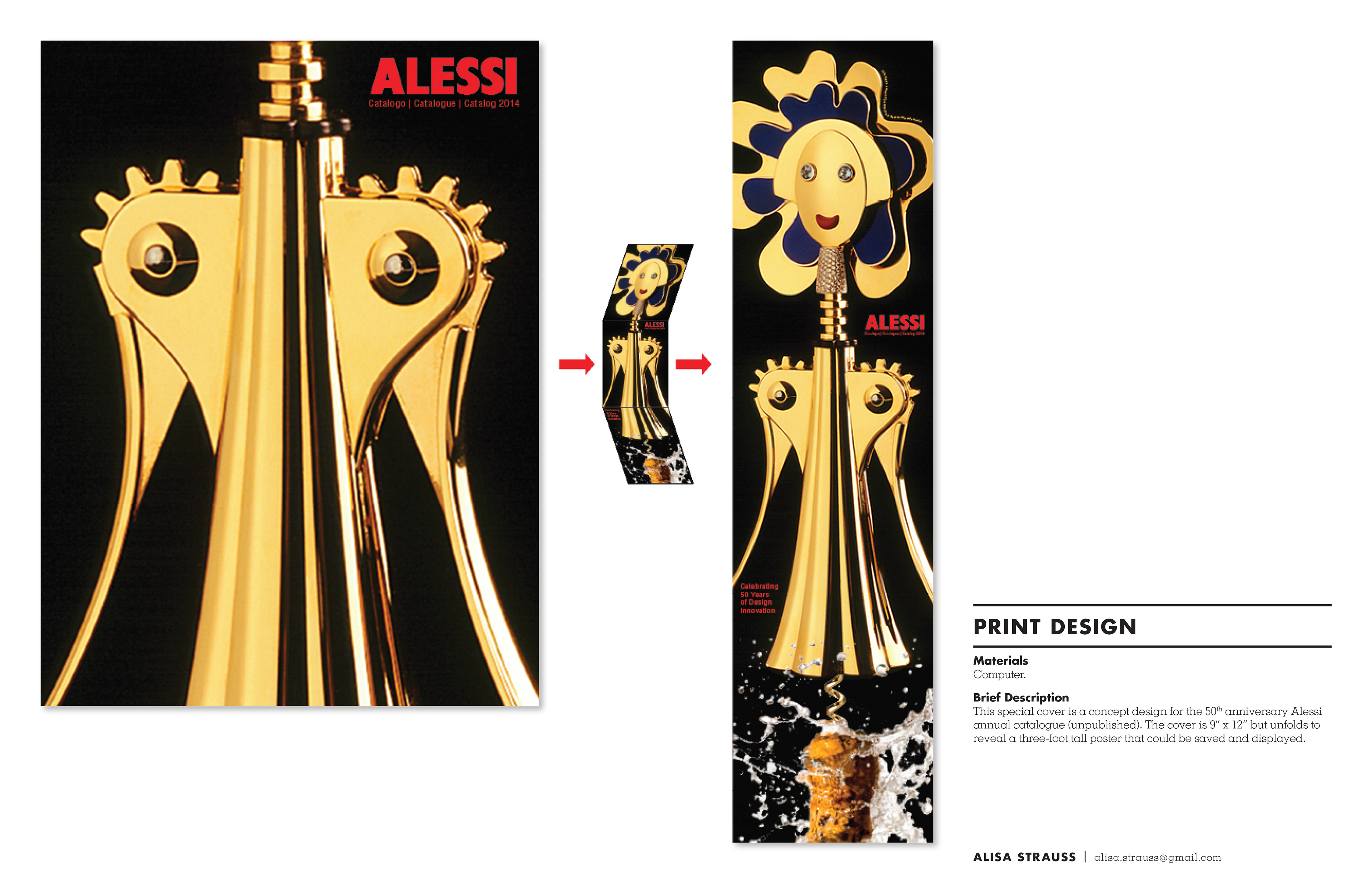 Special cover design of an Alessi anniversary catalogue that transforms from cover into collectable poster.